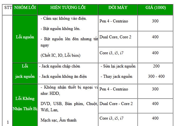 Các bệnh thường khi sửa laptop quận bình thạnh của chúng tôi.